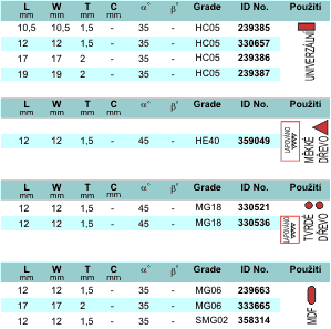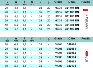 | Polotovary HS nožov do bezpečnostných frézovacích hláv |